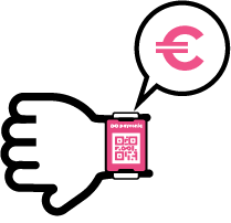 The payer scans the QR code on the card or wristband